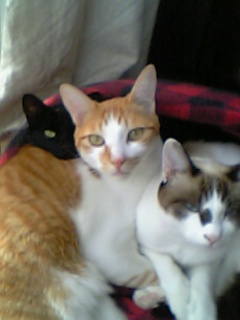 大きくなってもやっぱり3匹は仲良しで、1匹用の猫ベッドにぎゅうぎゅうと詰まってお昼寝してました。