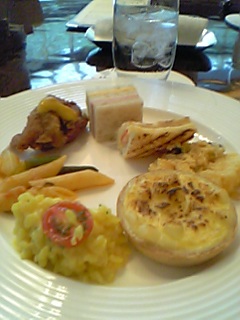 二皿目は食事系のものをチョイス。ホットサンド、コールドサンド、リゾット、キッシュ、パスタなど。