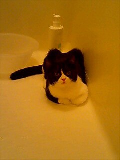 やっくんは思った通り濡れても細くなりませんでした。濡れて張り付いた毛皮がなんだかアザラシみたいでしたよー。にゃ~んって鳴くアザラシ(笑)。