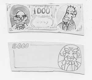 5000円札は製作途中です。しかし紙をまっすぐに切ってない時点で偽札としてよろしくないですね。