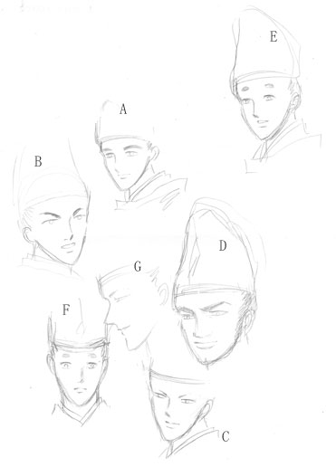 A 下書きの段階ではこの顔でした。が、これでは友雅の家人の則正と同一人物じゃん!と気付いて変更。